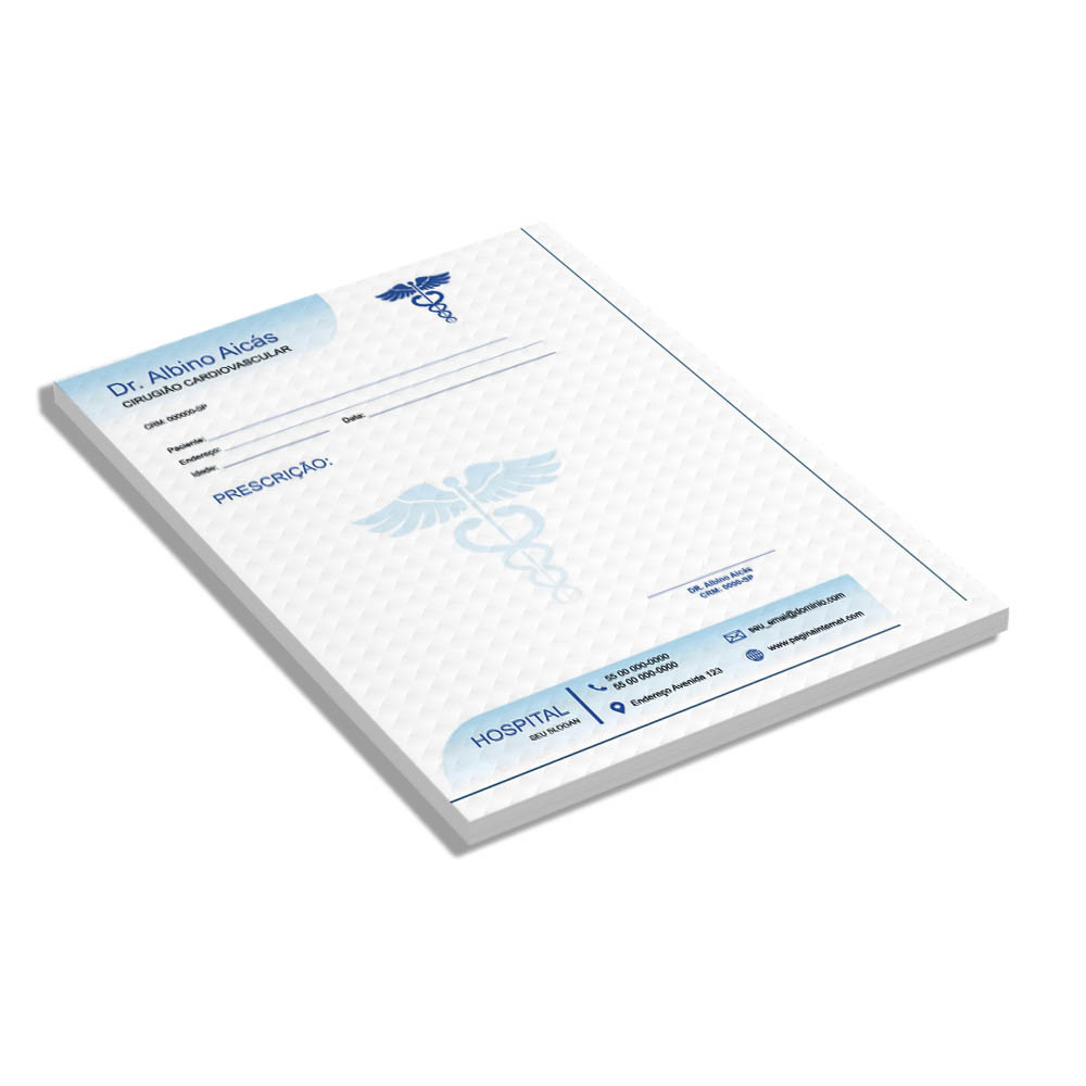 Nossa empresa oferece layouts exclusivos de receituário, que podem incluir logotipos, CRM ou CRO, além de outras informações personalizadas que destacam a identidade visual dos nossos clientes. Trabalhamos com papéis de impressão de alta gramatura e acabamentos sofisticados, para criar receituários que combinam resistência e elegância. Além disso, garantimos o cumprimento rigoroso dos prazos de entrega, ajudando você a manter a organização do seu consultório ou clínica.
